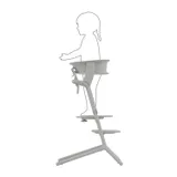 Mit vier Schrauben lässt sich der Hochstuhl in wenigen Minuten montieren. Sitz und Fußstütze lassen sich mit einer Hand in der Höhe verstellen. Der Sitz bietet außerdem vier Tiefenpositionen für optimale Ergonomie in jeder Wachstumsphase.